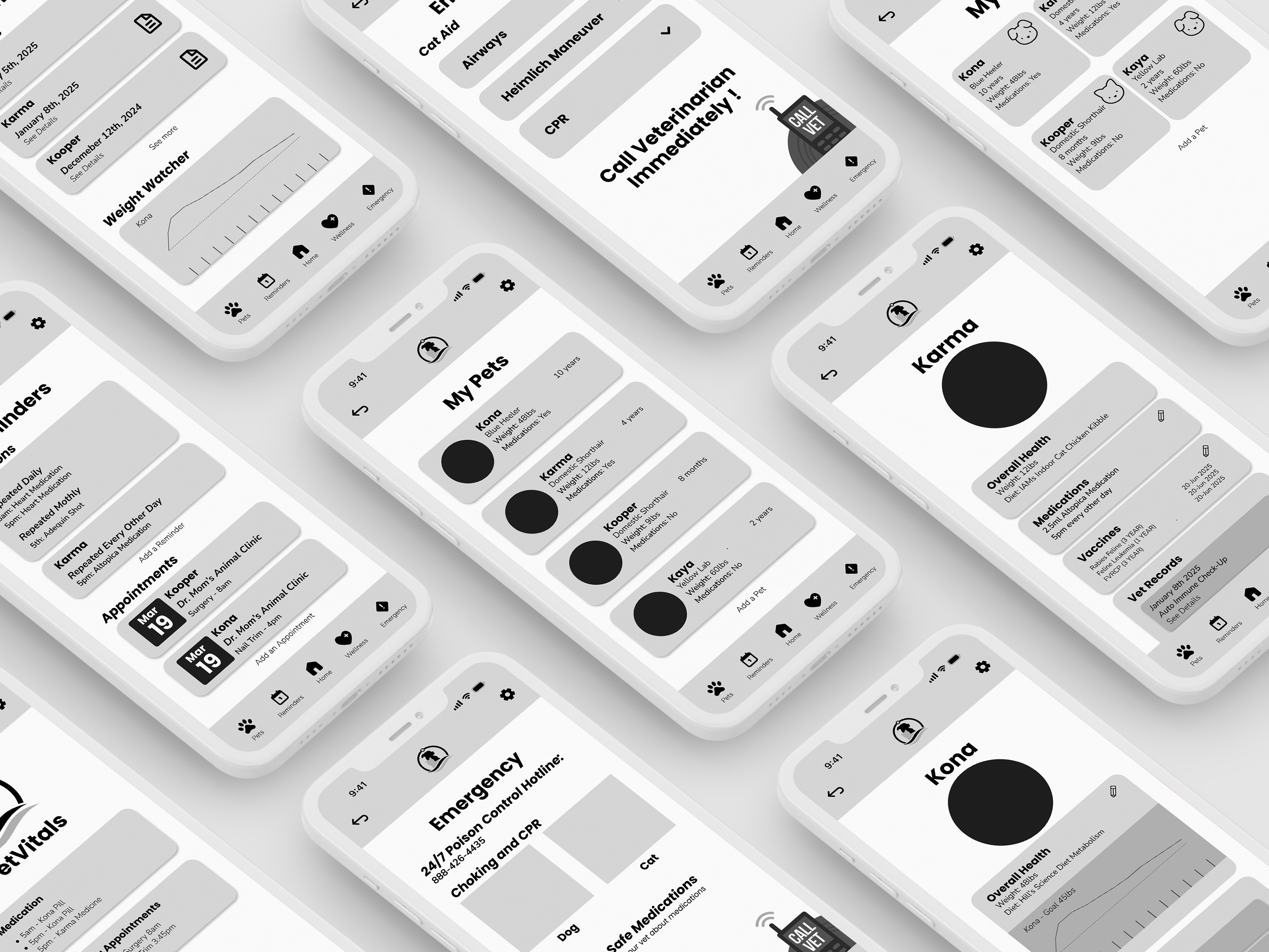 app and interact with key features like reminders, pet profiles, and emergency tools. This helped lay out the overall structure and screen hierarchy early on.